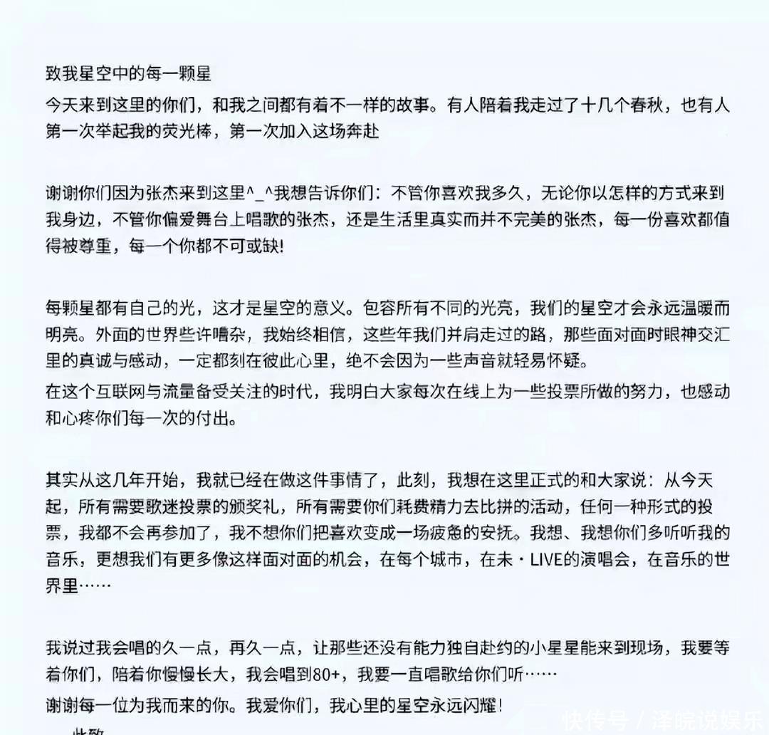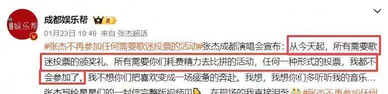明眼人都能看出来,张杰这个决定绝对不是一时冲动,而是在心里掂量了千百遍的结果。他在演唱会上也特意跟大家说,希望所有人的目光都能放在他的作品上,而不是那些争来争去的投票榜单。而让他做出这个决定的根源,说到底还是自家粉丝惹出的一桩桩糟心事。